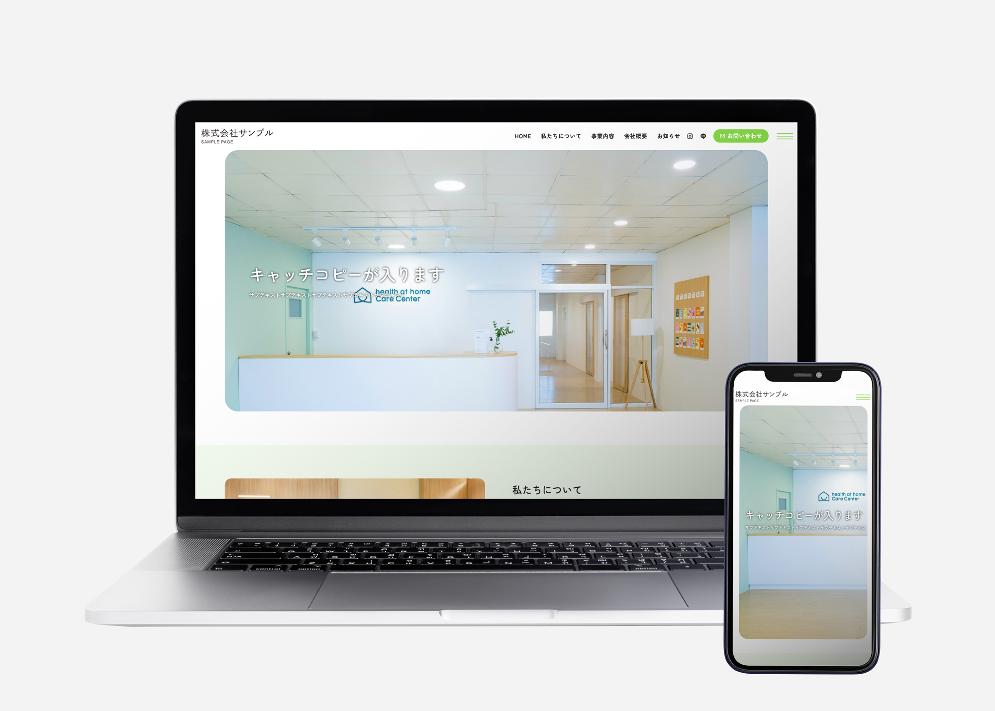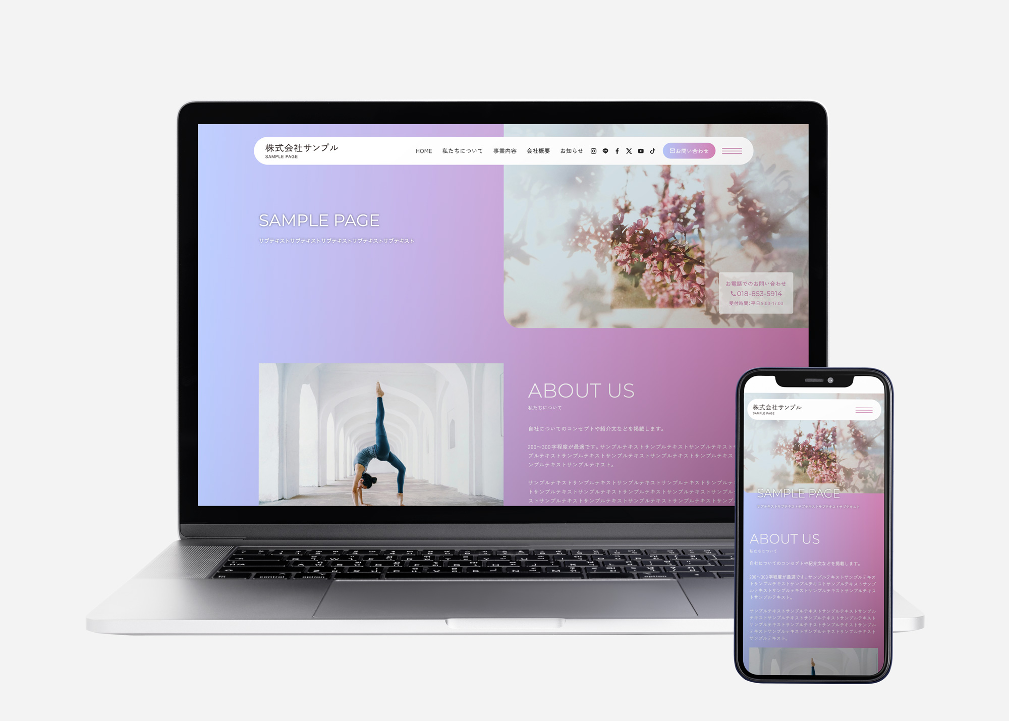 角丸を使用した、クリーンで優しい印象を与えるデザイン。美容・教育・医療・介護系のサイトにおすすめ。